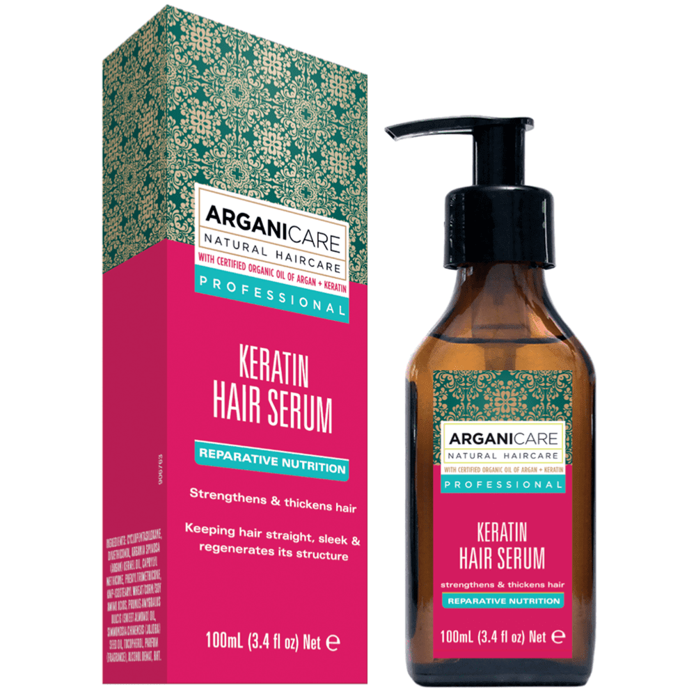 - Un sérum réparateur et nutritif à la kératine de la marque Arganicare qui va renforcer et protéger les cheveux secs et abîmés afin de leur redonner douceur et brillance.