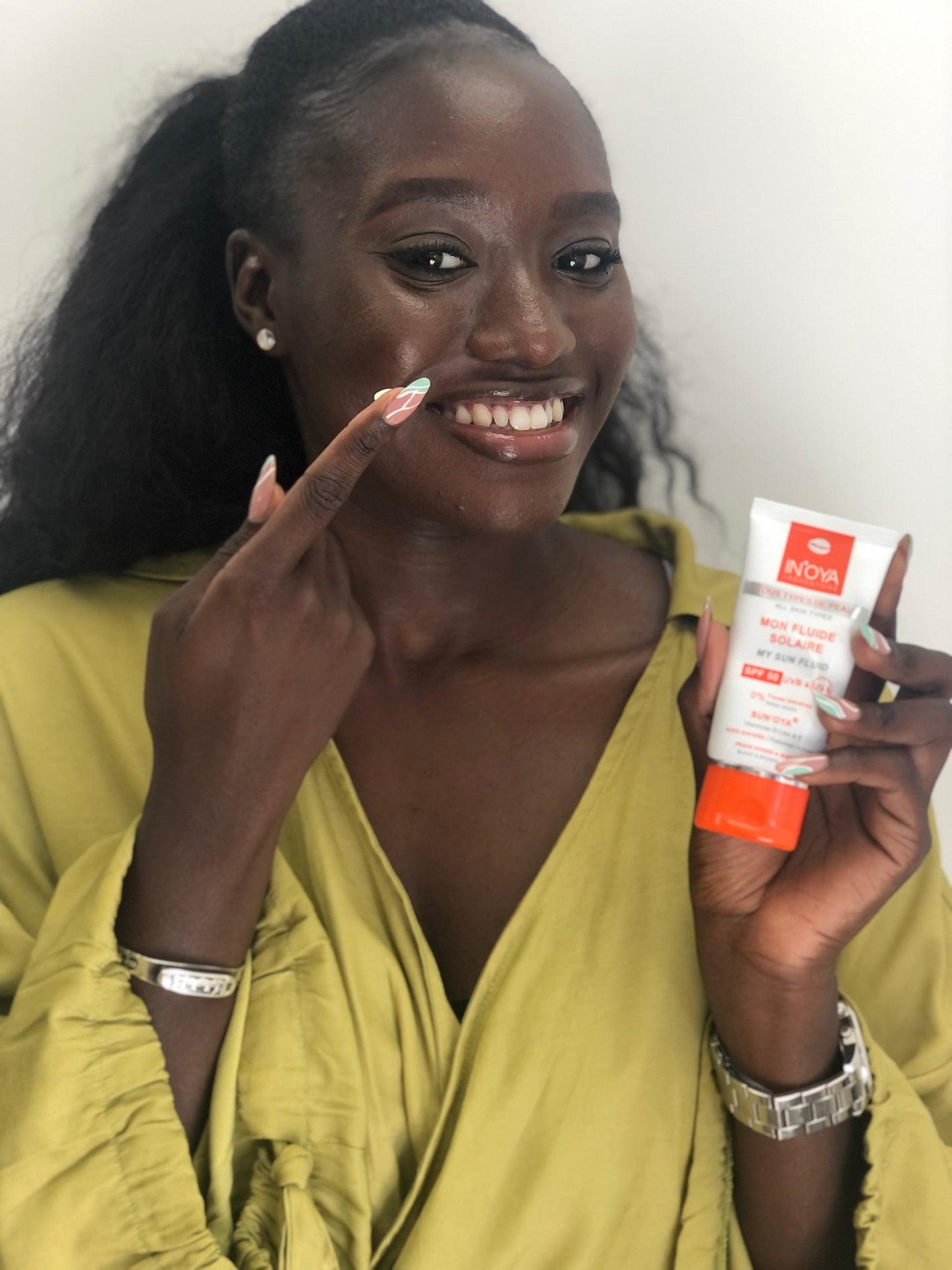 Mon Fluide Solaire SPF 50 « SUN’OYA® » garantit une haute protection solaire et filtre les UVB & les UVA pour un résultat remarquable : une peau noire, mate et métissée protégée sans traces blanches.